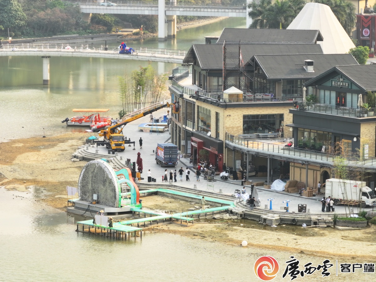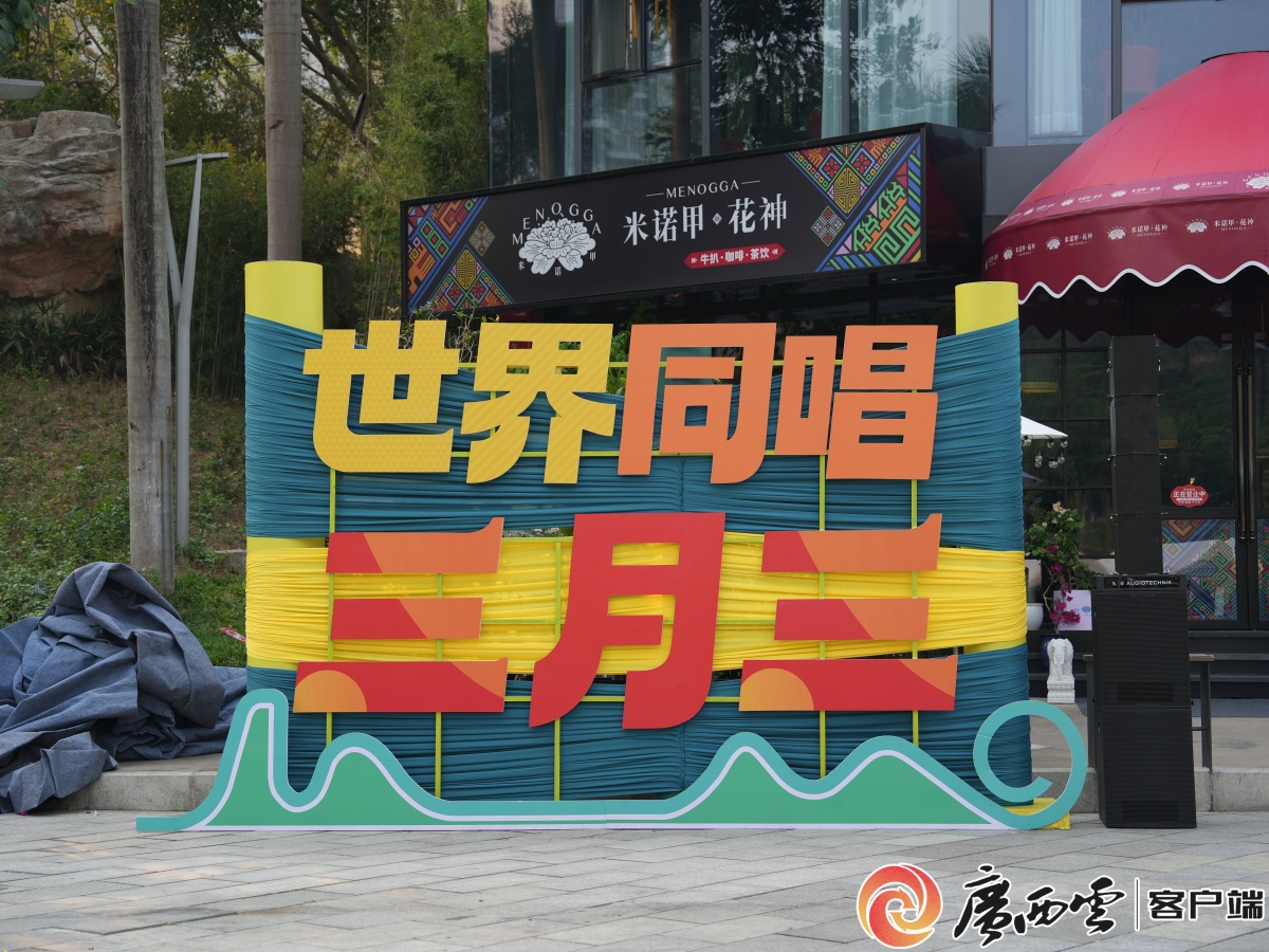 民歌湖裝扮一新,“三月三”元素隨處可見,節(jié)慶氛圍日益濃郁。