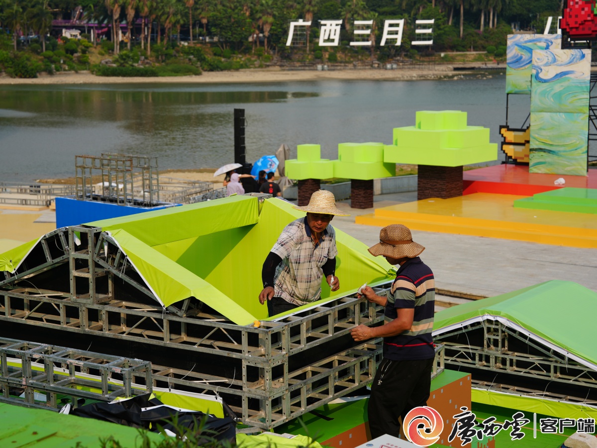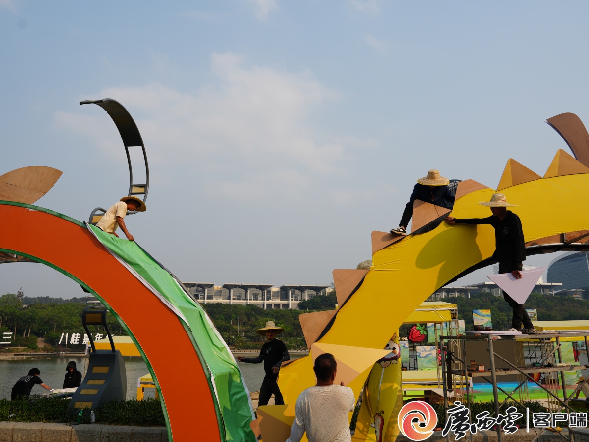 2026年“廣西三月三·八桂嘉年華”開幕式將于4月18日上午在南寧市民歌湖舉行。4月13日下午,記者前往民歌湖探訪發(fā)現(xiàn),目前各項布置工作正有條不紊地開展,各式各樣的“三月三”元素已隨處可見,濃郁的節(jié)慶氛圍撲面而來。