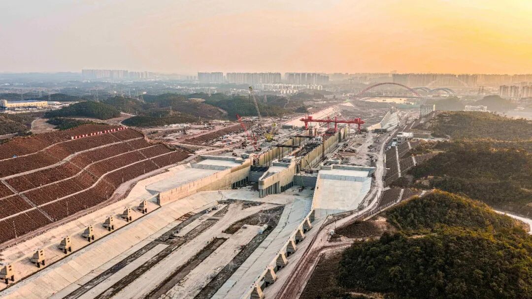 正月初二,記者來到馬道樞紐建設現場。在一號觀測臺抬眼望去,曾經密密麻麻的塔吊不見了蹤影,僅剩移動臺式啟閉機在忙碌。這一世界級內河省水船閘,主體結構已全面完工,雄姿已然巍峨。