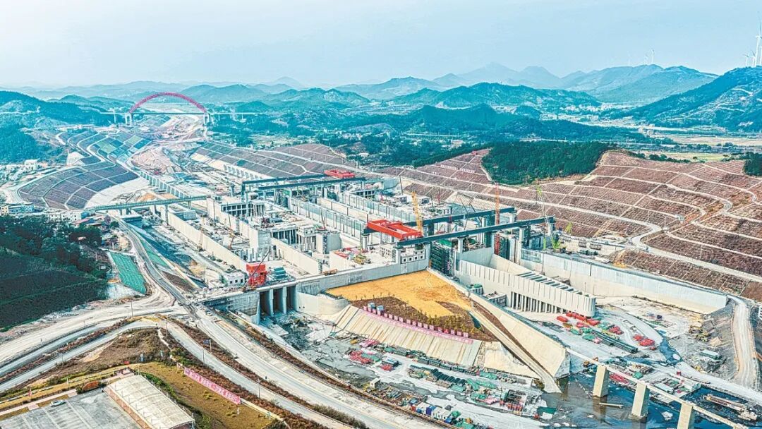 2月19日,建設中的平陸運河馬道樞紐,世界級內河省水船閘主體結構已全面完工。