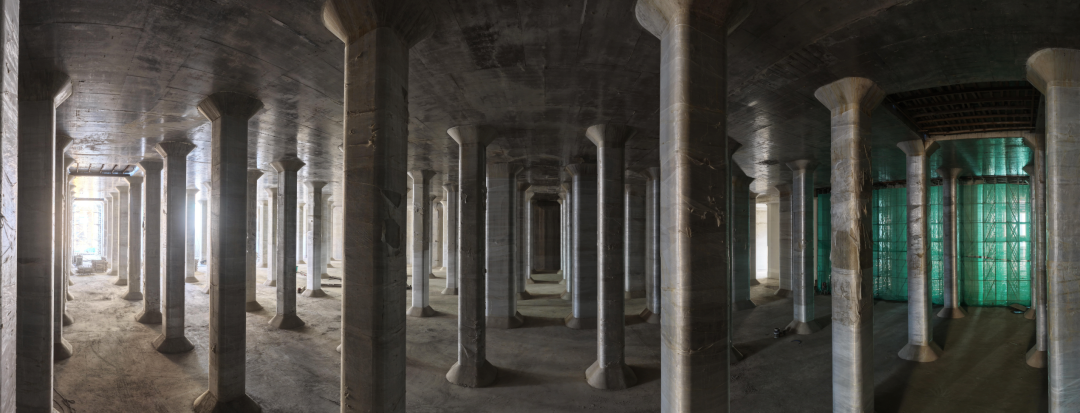 企石樞紐省水池內部柱子成林。